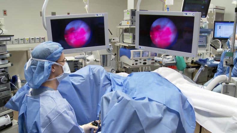 يستخدم الأطباء منظاراً ، يسمى مفتت الحصى ، للبحث عن الحصوات وتكسيرها باستخدام الليزر أوالموجات الصادمة.